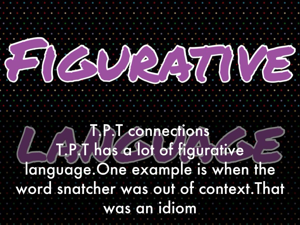 T.P.T has a lot of figurative language.One example is when the word snatcher was out of context.That was an idiom