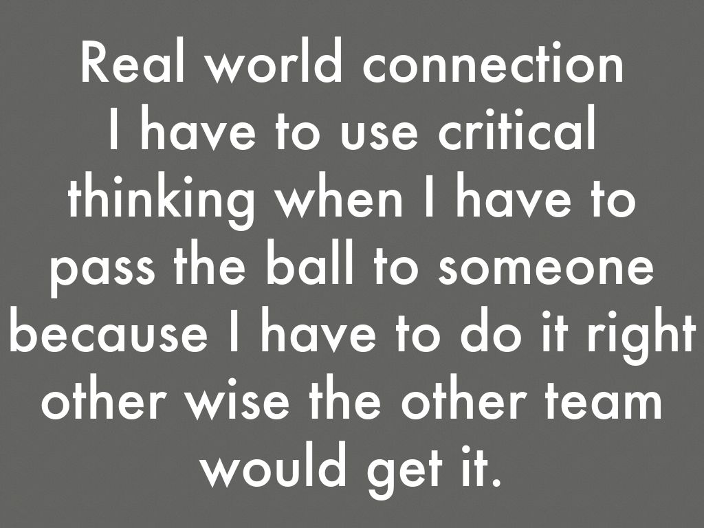 I have to use critical thinking when I have to pass the ball to someone because I have to do it right other wise the other team would get it.