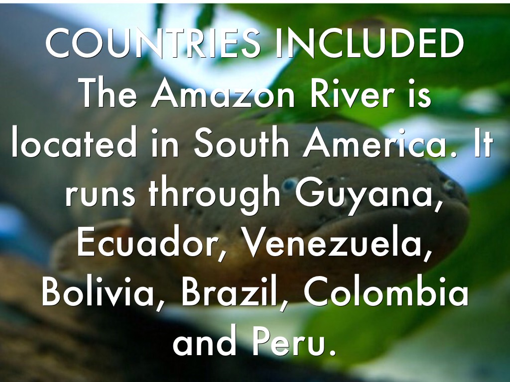 The Amazon River is located in South America. It runs through Guyana, Ecuador, Venezuela, Bolivia, Brazil, Colombia and Peru.