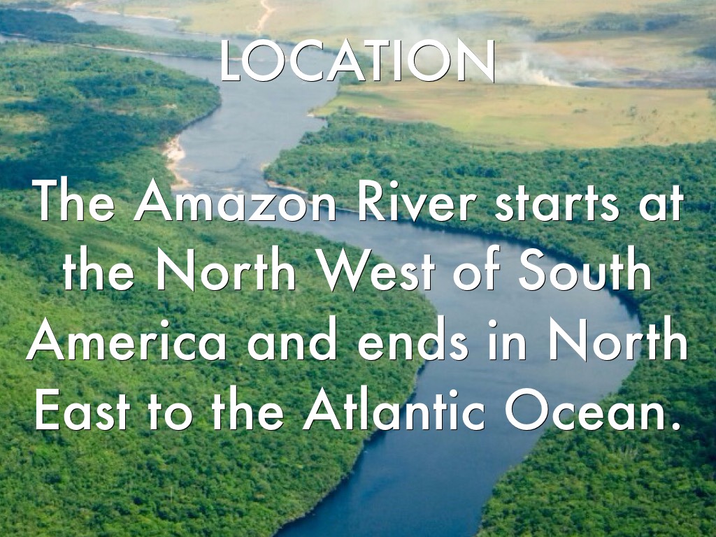 The Amazon River starts at the North West of South America and ends in North East to the Atlantic Ocean.