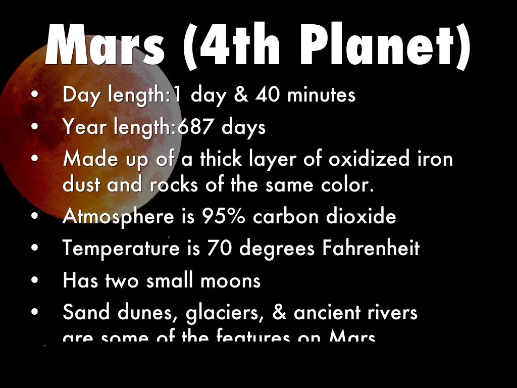 - Day length: 58 days,15 hours,& 30 minutes