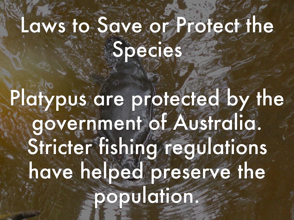 Platypus are protected by the government of Australia. Stricter fishing regulations have helped preserve the population.