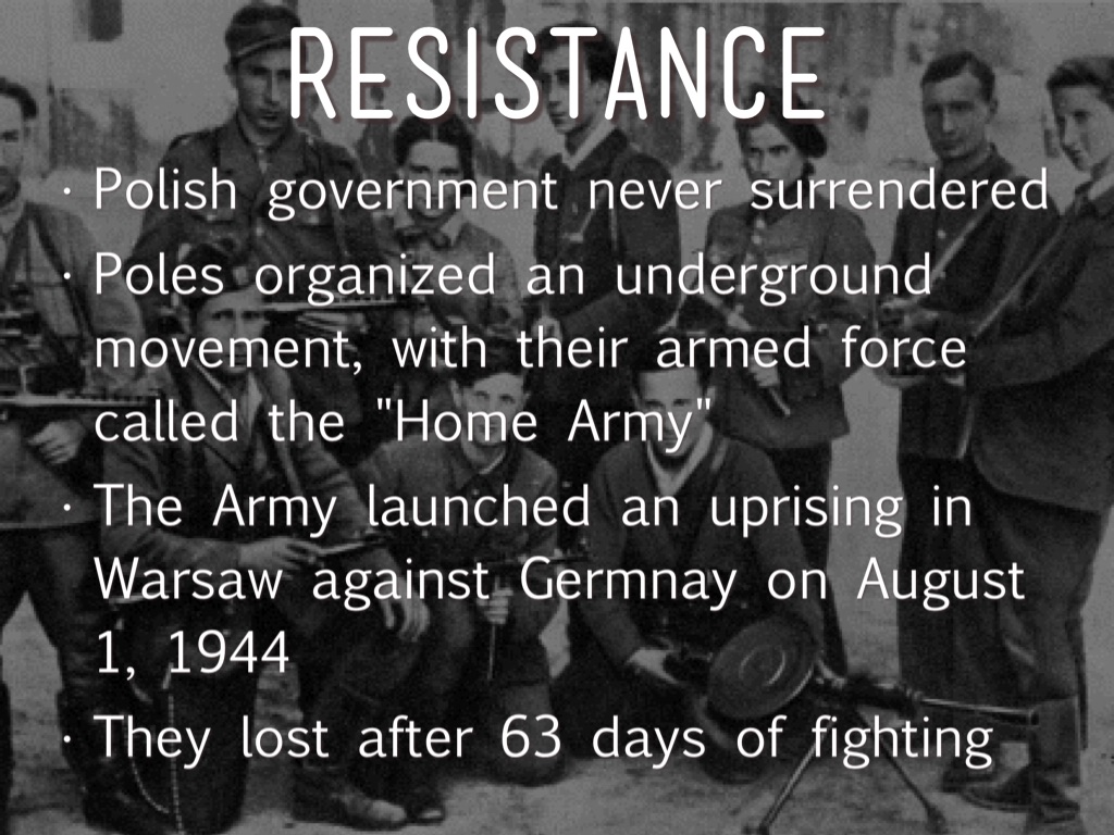 • Poles organized an underground movement, with their armed force called the "Home Army"