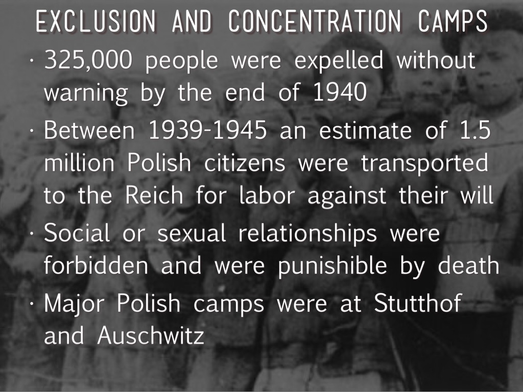• Between 1939-1945 an estimate of 1.5 million Polish citizens were transported to the Reich for labor against their will