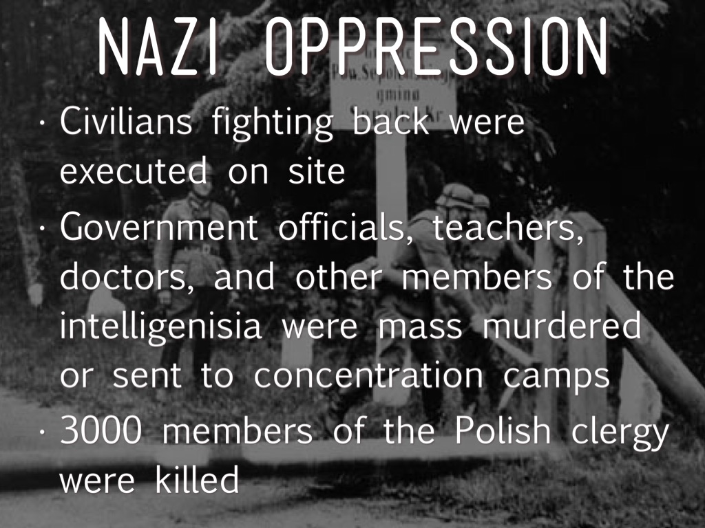 • Germans also closed Polish churches, seminaries, and convents (persecuting the monks and nuns as well)