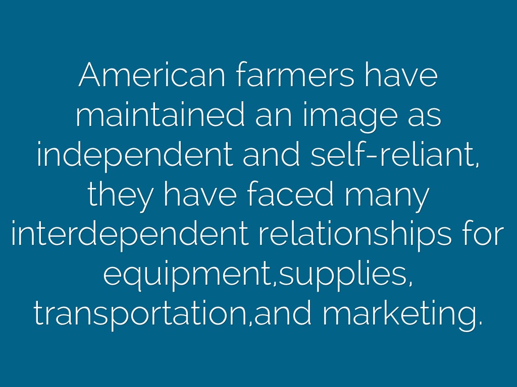 American farmers have maintained an image as independent and self-reliant, they have faced many interdependent relationships for equipment,supplies, transportation,and marketing.