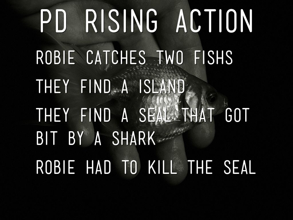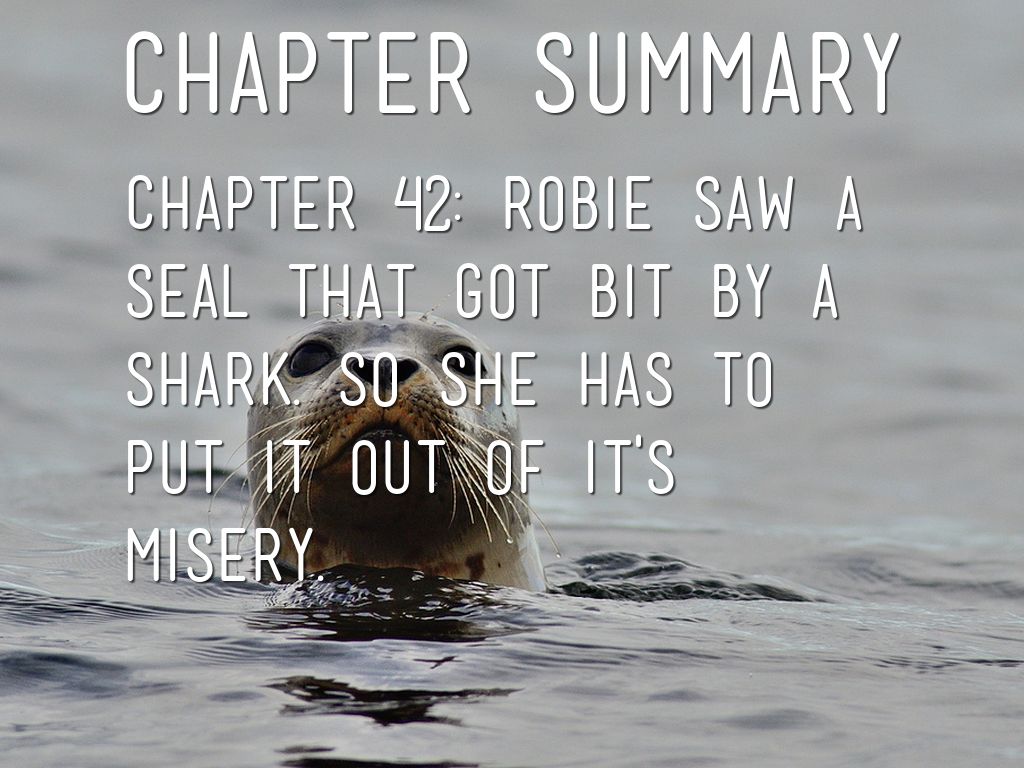 Chapter 42: Robie saw a seal that got bit by a shark. So she has to put it out of it's misery.