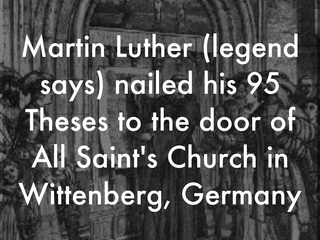 Martin Luther (legend says) nailed his 95 Theses to the door of All Saint's Church in Wittenberg, Germany