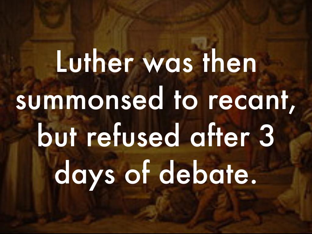 Luther was then summonsed to recant, but refused after 3 days of debate.