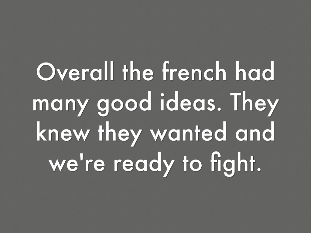 Overall the french had many good ideas. They knew they wanted and we're ready to fight.