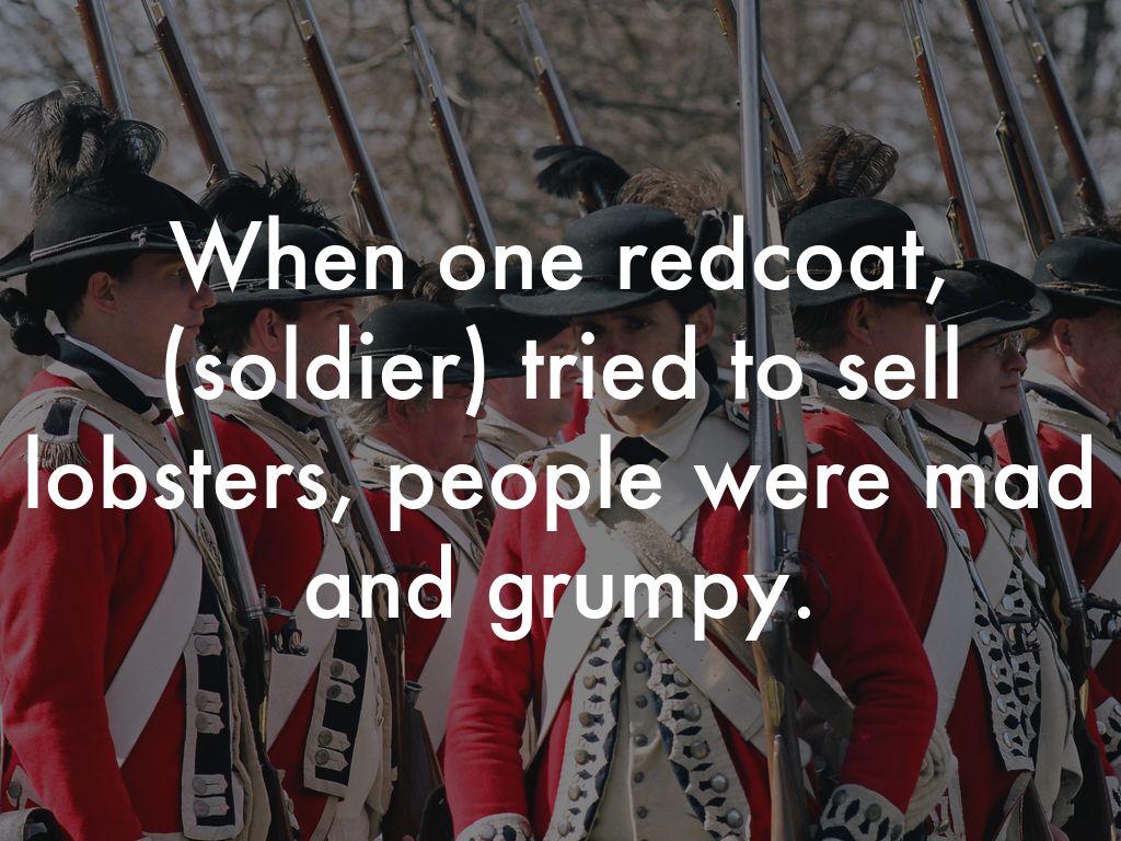 When one redcoat, (soldier) tried to sell lobsters, people were mad and grumpy.