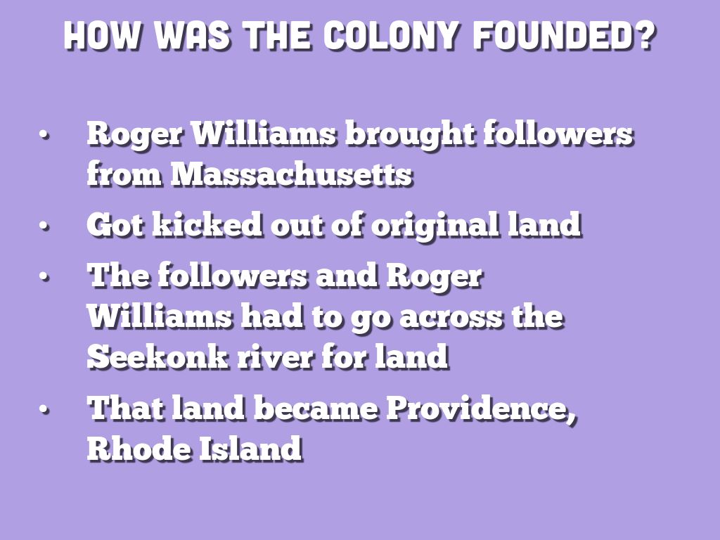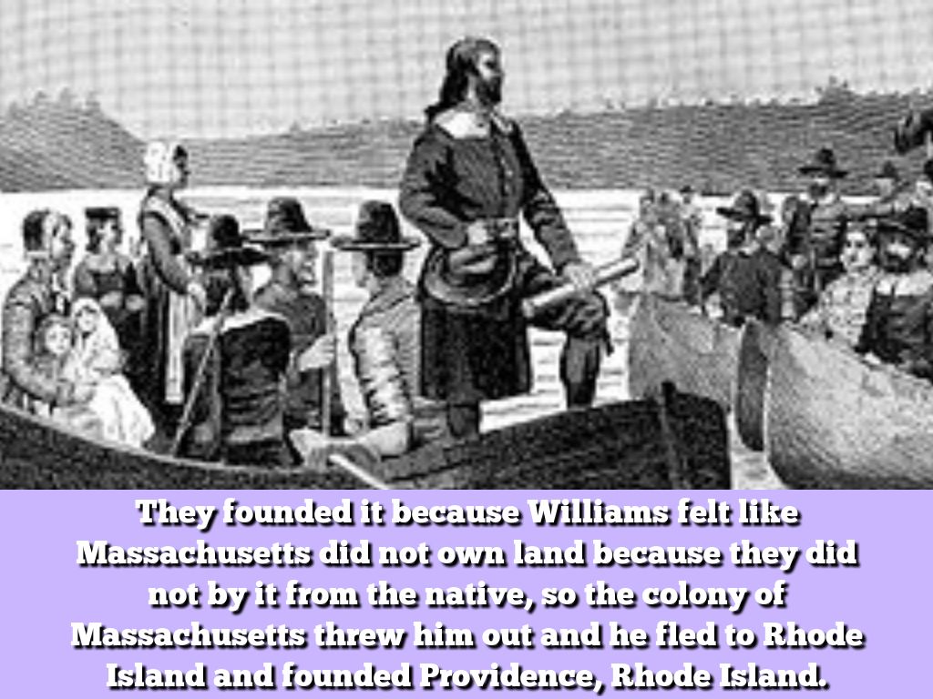 They founded it because Williams felt like Massachusetts did not own land because they did not by it from the native, so the colony of Massachusetts threw him out and he fled to Rhode Island and founded Providence, Rhode Island.