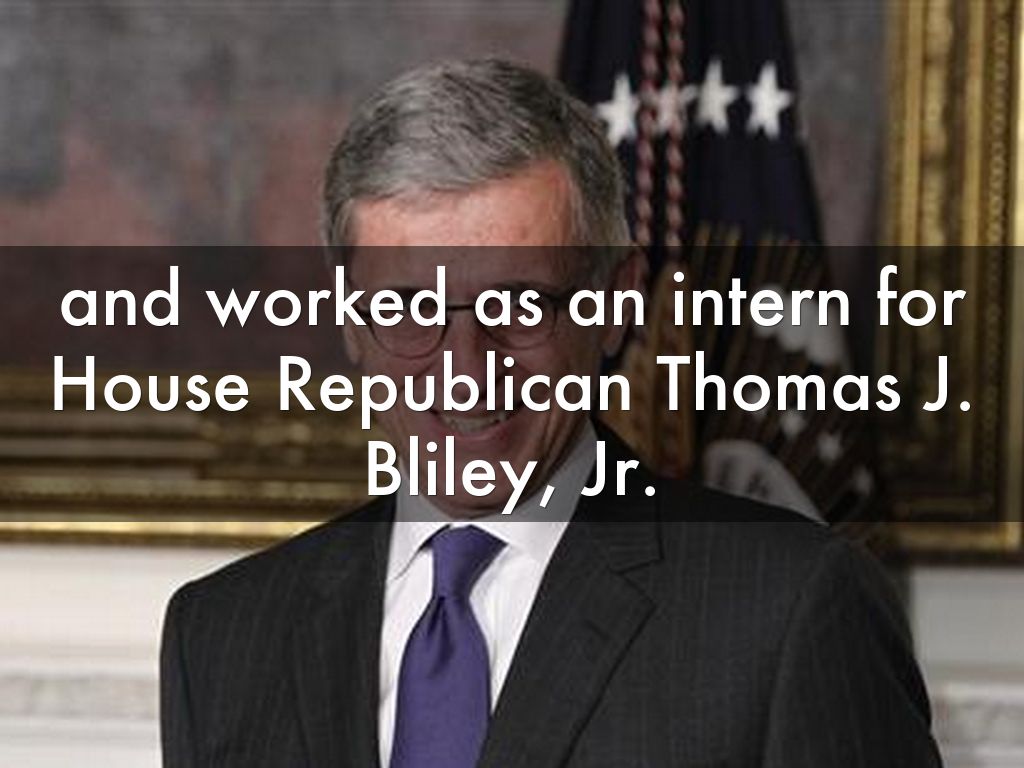 and worked as an intern for House Republican Thomas J. Bliley, Jr.