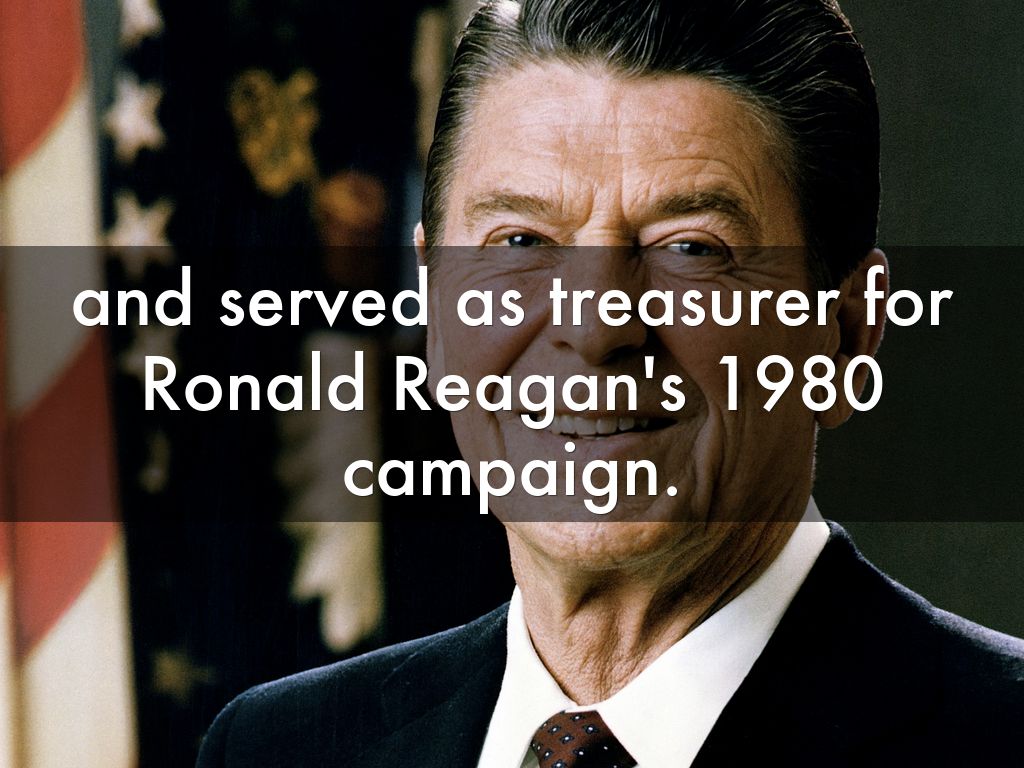 and served as treasurer for Ronald Reagan's 1980 campaign.