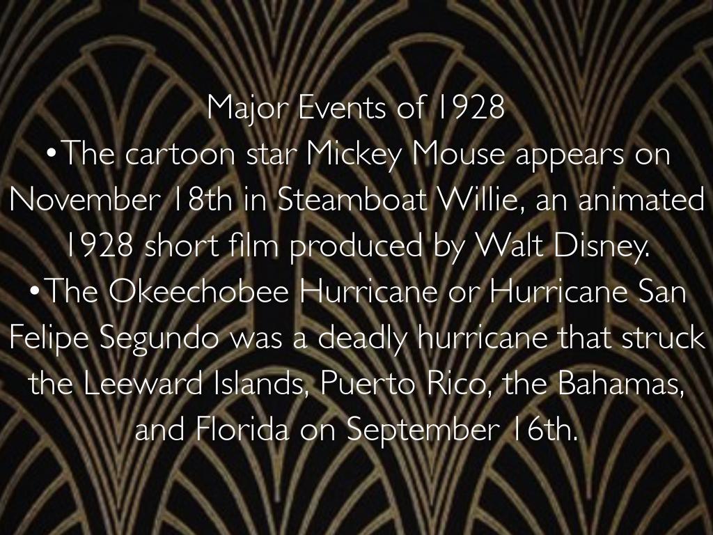 •The Okeechobee Hurricane or Hurricane San Felipe Segundo was a deadly hurricane that struck the Leeward Islands, Puerto Rico, the Bahamas, and Florida on September 16th.