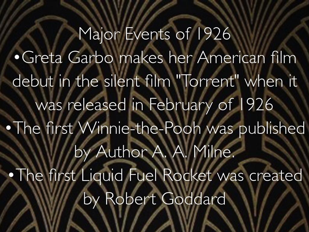 •Greta Garbo makes her American film debut in the silent film "Torrent" when it was released in February of 1926