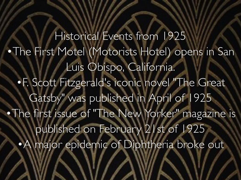•F. Scott Fitzgerald's iconic novel "The Great Gatsby" was published in April of 1925