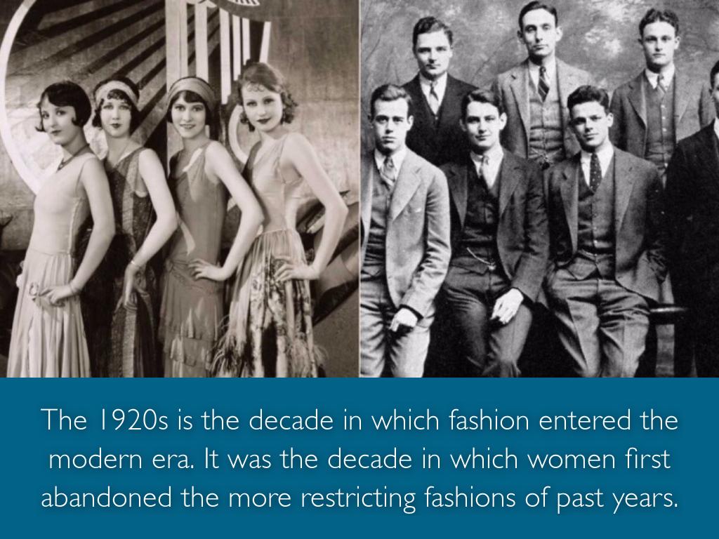 The 1920s is the decade in which fashion entered the modern era. It was the decade in which women first abandoned the more restricting fashions of past years.