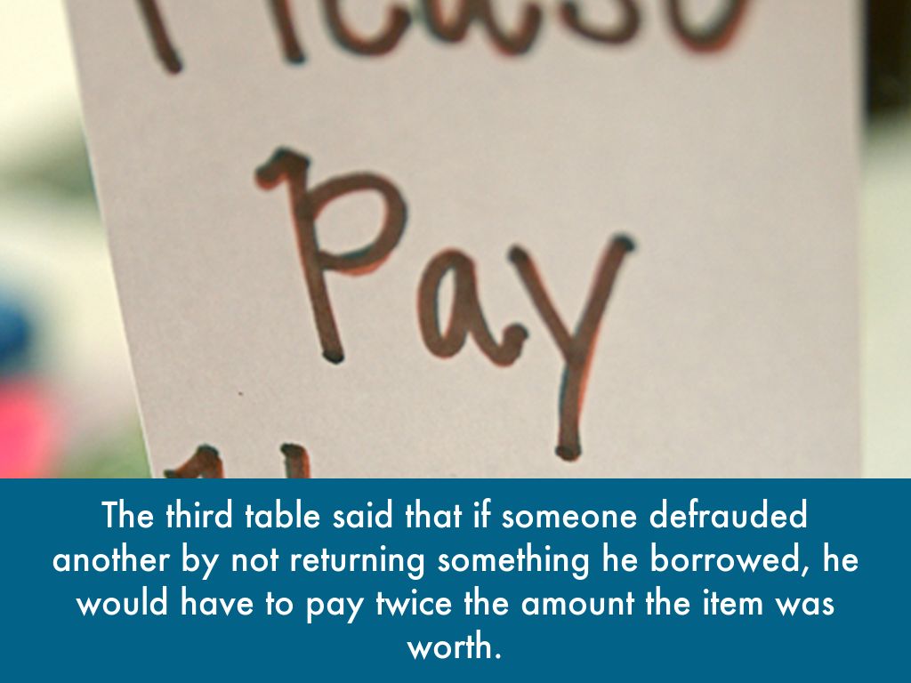 The third table said that if someone defrauded another by not returning something he borrowed, he would have to pay twice the amount the item was worth.