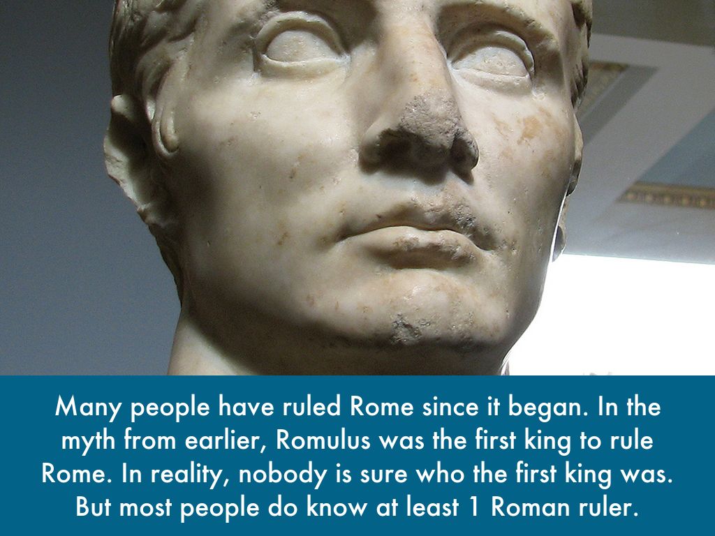 Many people have ruled Rome since it began. In the myth from earlier, Romulus was the first king to rule Rome. In reality, nobody is sure who the first king was. But most people do know at least 1 Roman ruler.