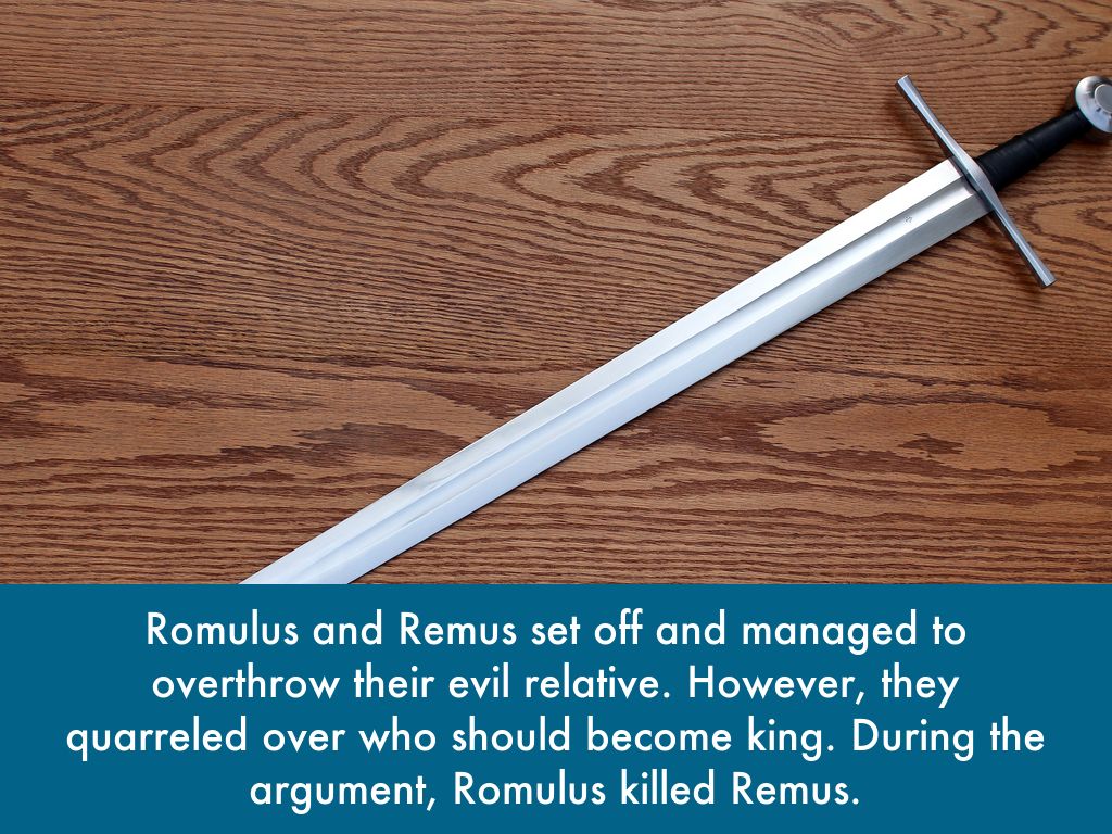 Romulus and Remus set off and managed to overthrow their evil relative. However, they quarreled over who should become king. During the argument, Romulus killed Remus.
