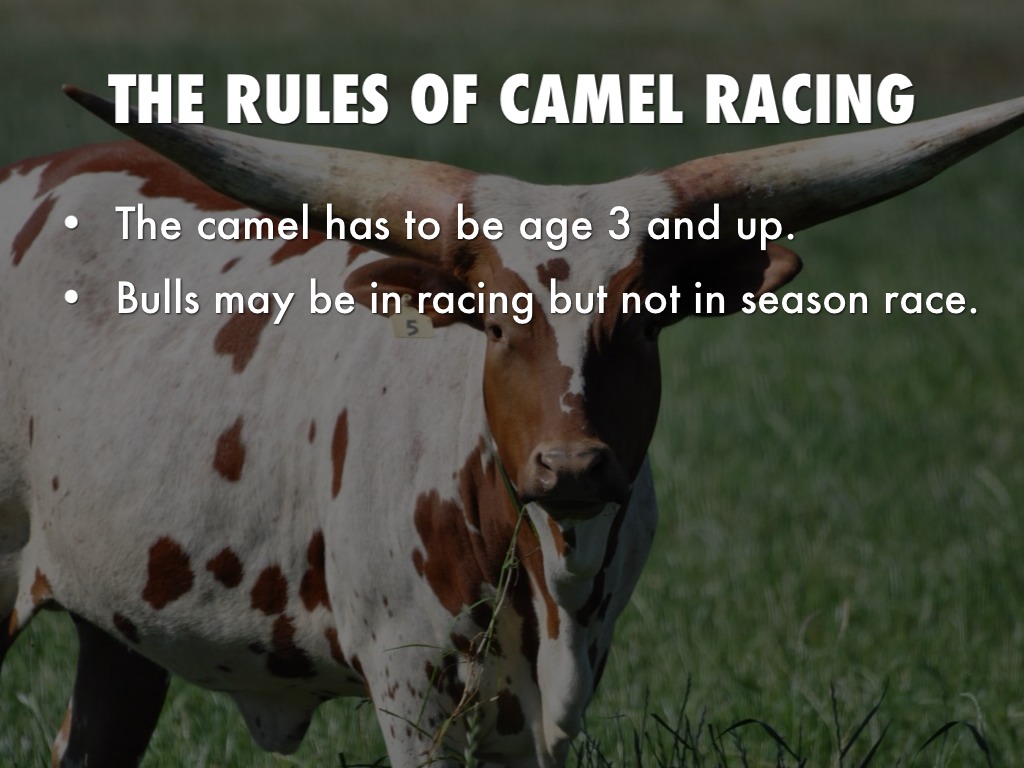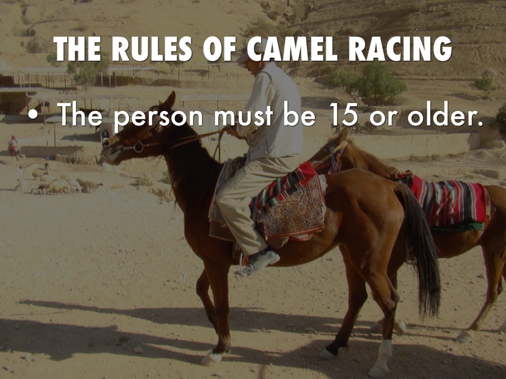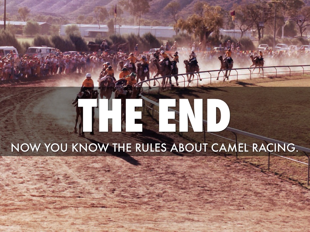 NOW YOU KNOW THE RULES ABOUT CAMEL RACING.