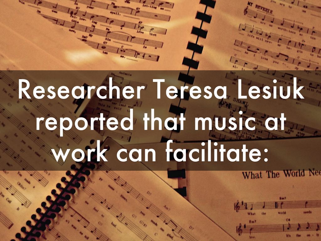 Researcher Teresa Lesiuk reported that music at work can facilitate: