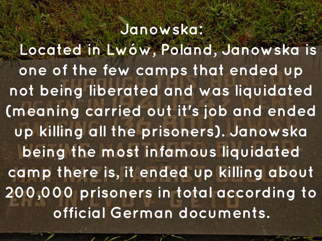 Located in Lwów, Poland, Janowska is one of the few camps that ended up not being liberated and was liquidated (meaning carried out it's job and ended up killing all the prisoners). Janowska being the most infamous liquidated camp there is, it ended up killing about 200,000 prisoners in total according to official German documents.