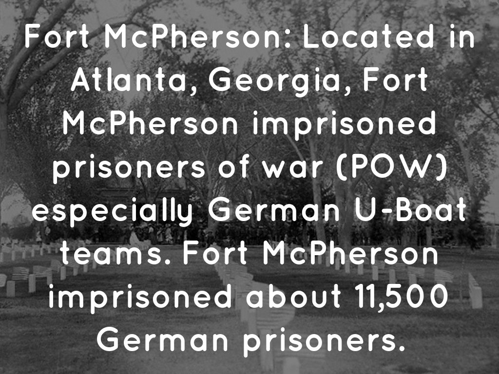 Fort McPherson: Located in Atlanta, Georgia, Fort McPherson imprisoned prisoners of war (POW) especially German U-Boat teams. Fort McPherson imprisoned about 11,500 German prisoners.