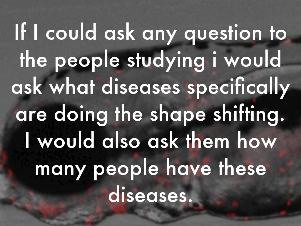 If I could ask any question to the people studying i would ask what diseases specifically are doing the shape shifting.