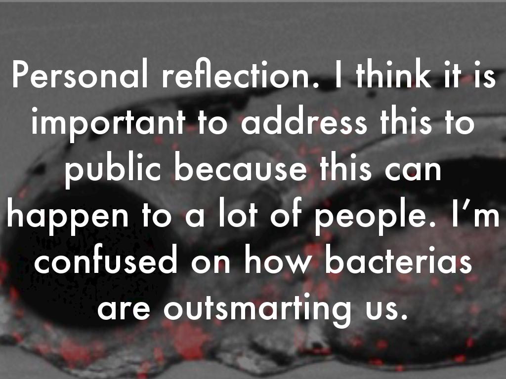 Personal reflection. I think it is important to address this to public because this can happen to a lot of people. I’m confused on how bacterias are outsmarting us.