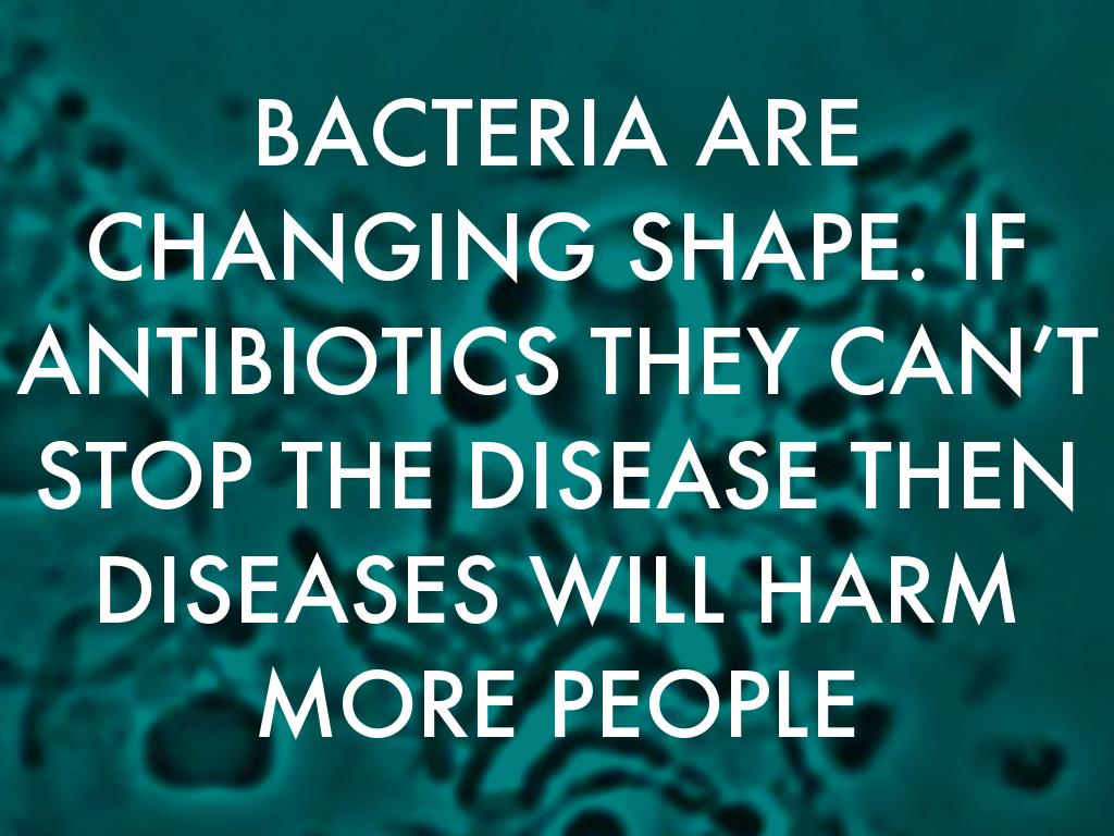 BACTERIA ARE CHANGING SHAPE. IF ANTIBIOTICS THEY CAN’T STOP THE DISEASE THEN DISEASES WILL HARM MORE PEOPLE