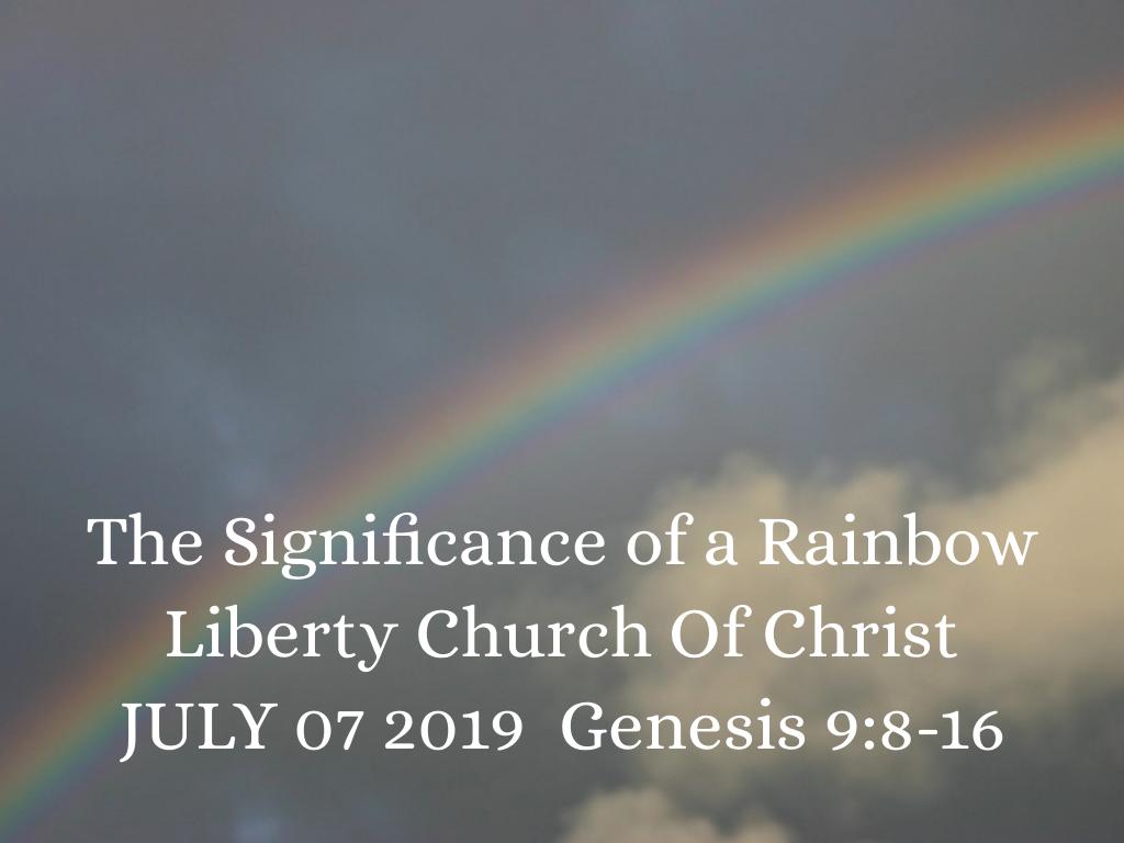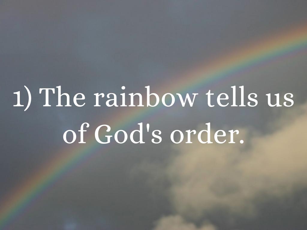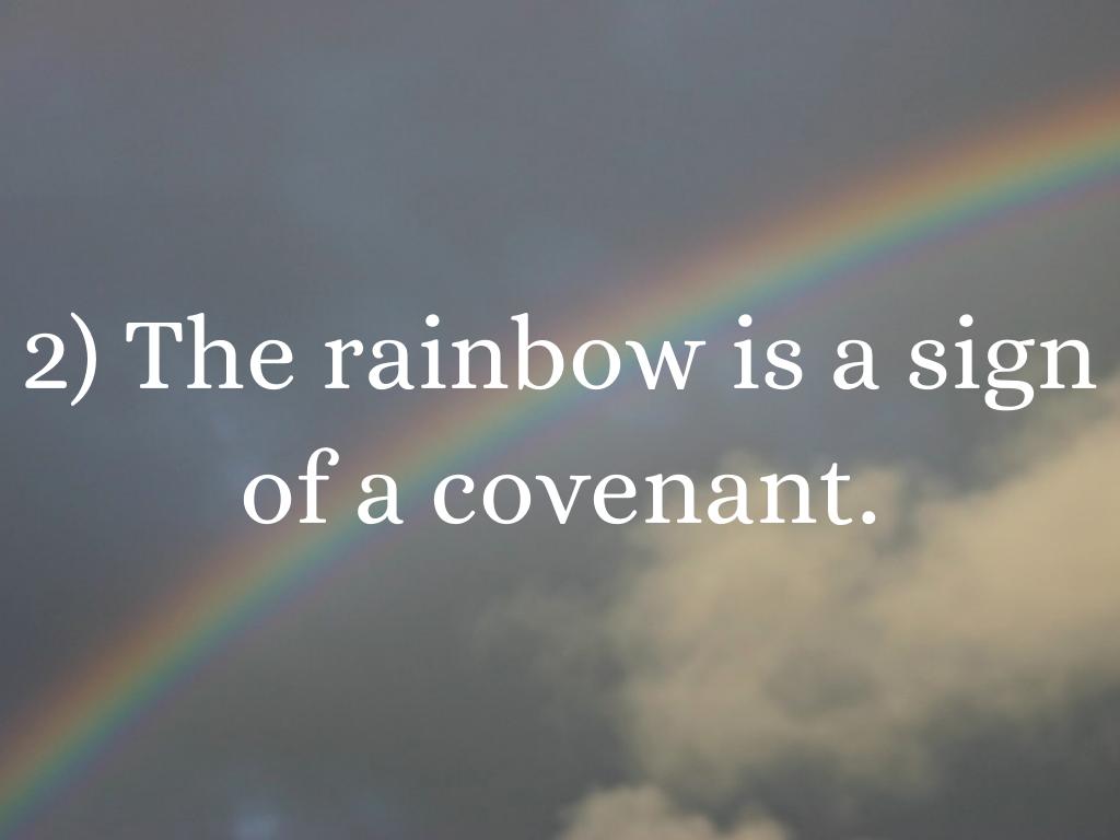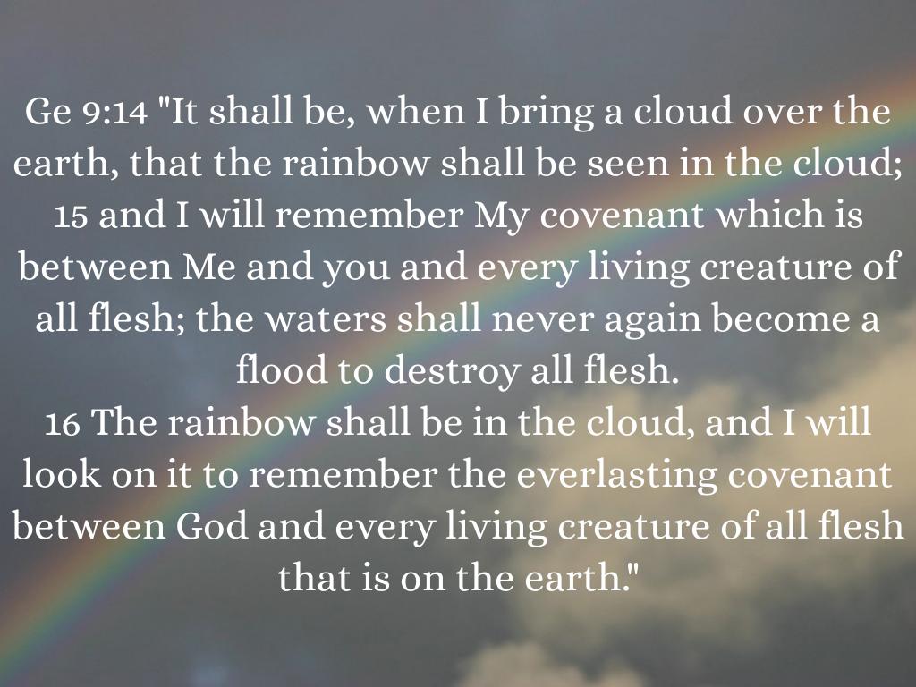 Ge 9:14 "It shall be, when I bring a cloud over the earth, that the rainbow shall be seen in the cloud; 15 and I will remember My covenant which is between Me and you and every living creature of all flesh; the waters shall never again become a flood to destroy all flesh. 16 The rainbow shall be in the cloud, and I will look on it to remember the everlasting covenant between God and every living creature of all flesh that is on the earth."
