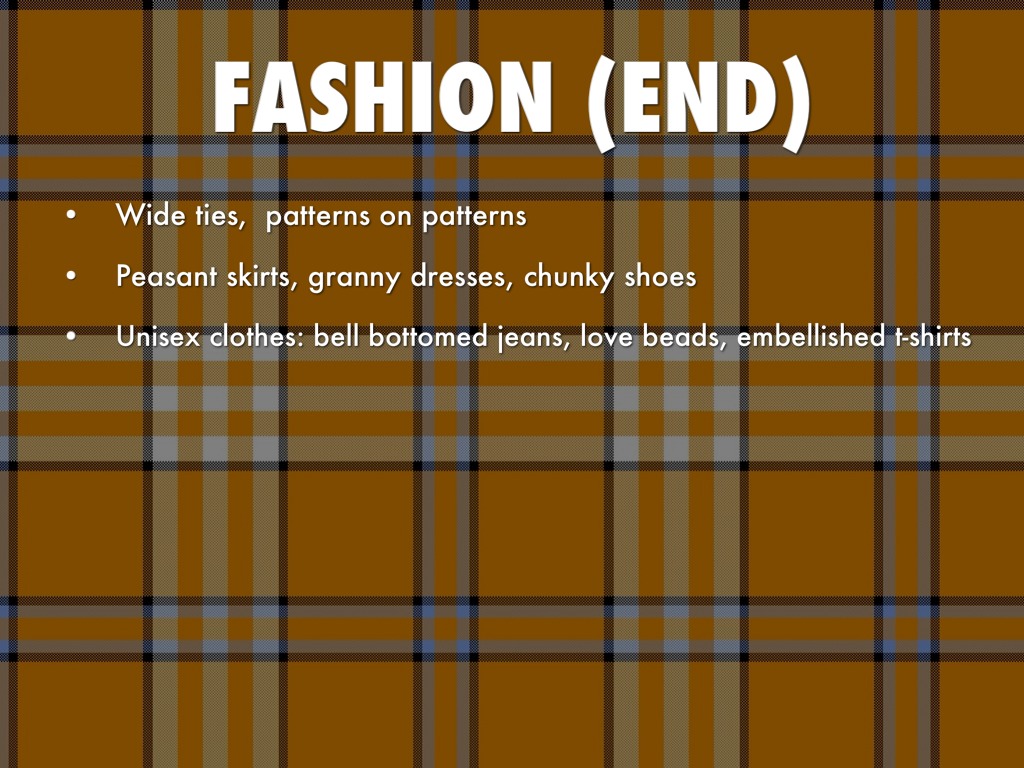 Unisex clothes: bell bottomed jeans, love beads, embellished t-shirts