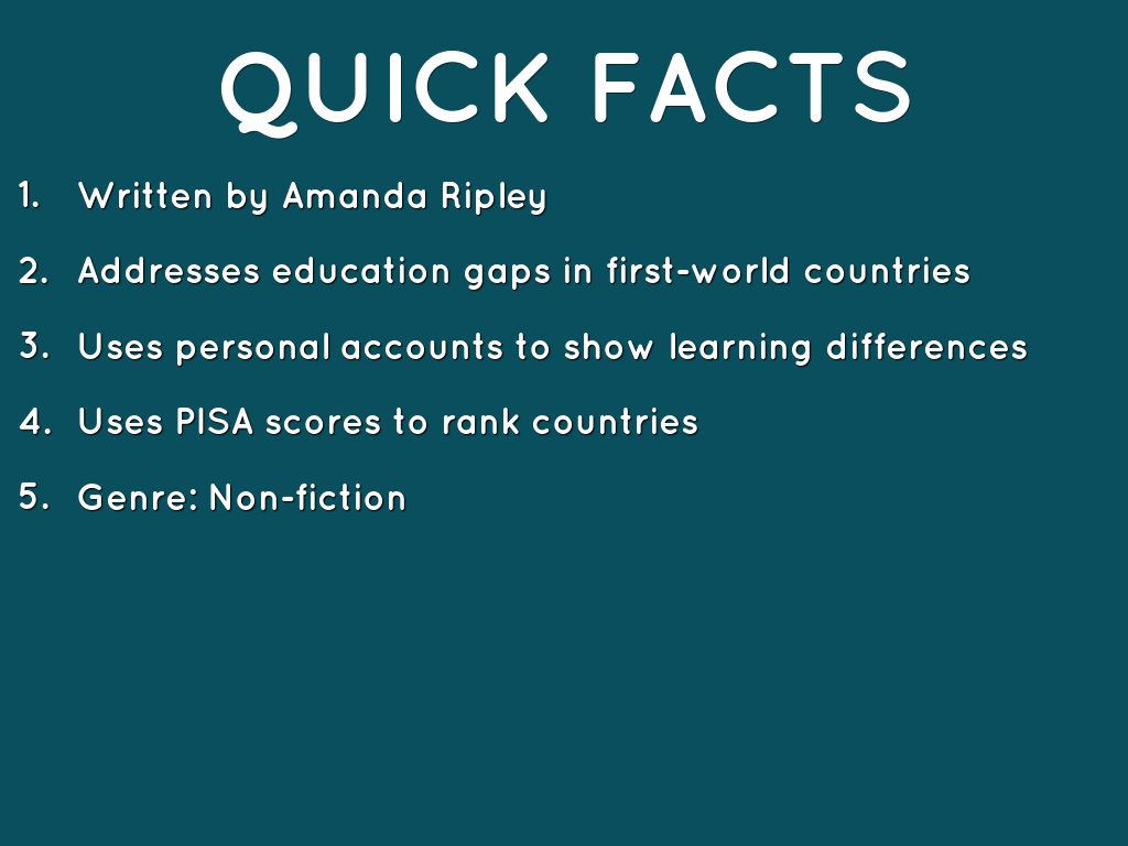 Ripley, Amanda. The Smartest Kids in the World and How they got That Way. Simon and Schuster. 2013. Print. 22 Apr 2014.