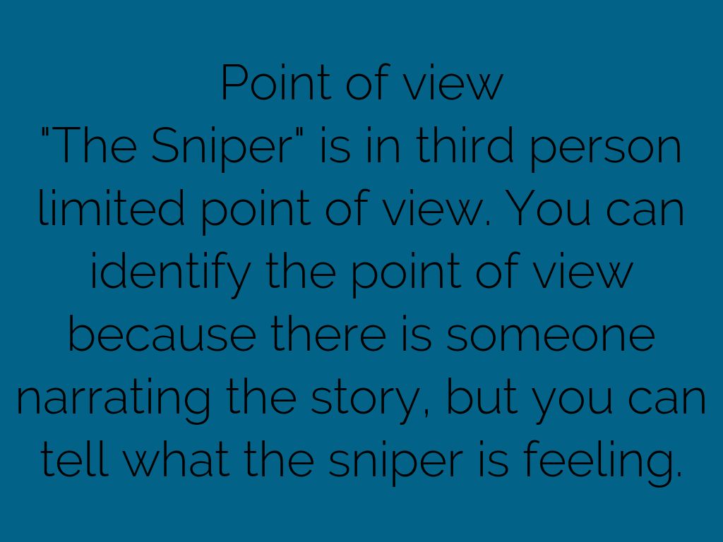 "The Sniper" is in third person limited point of view. You can identify the point of view because there is someone narrating the story, but you can tell what the sniper is feeling.