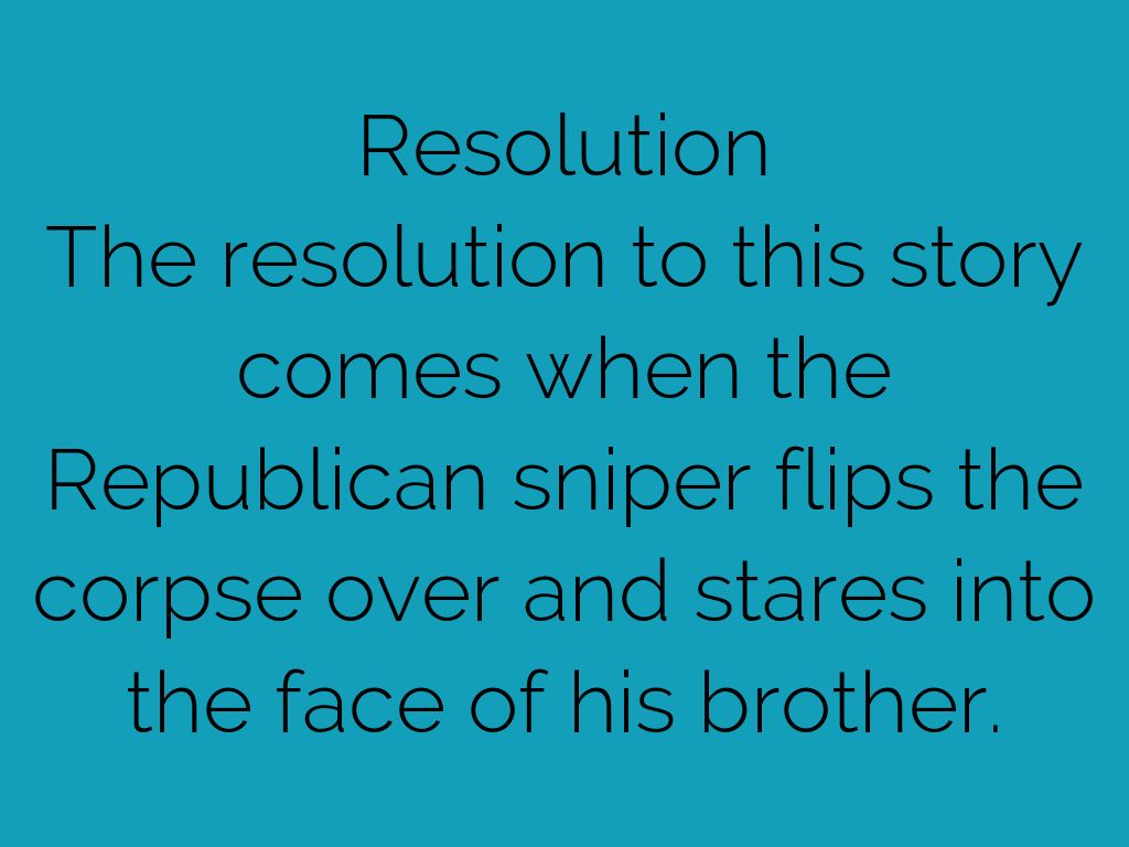 The resolution to this story comes when the Republican sniper flips the corpse over and stares into the face of his brother.