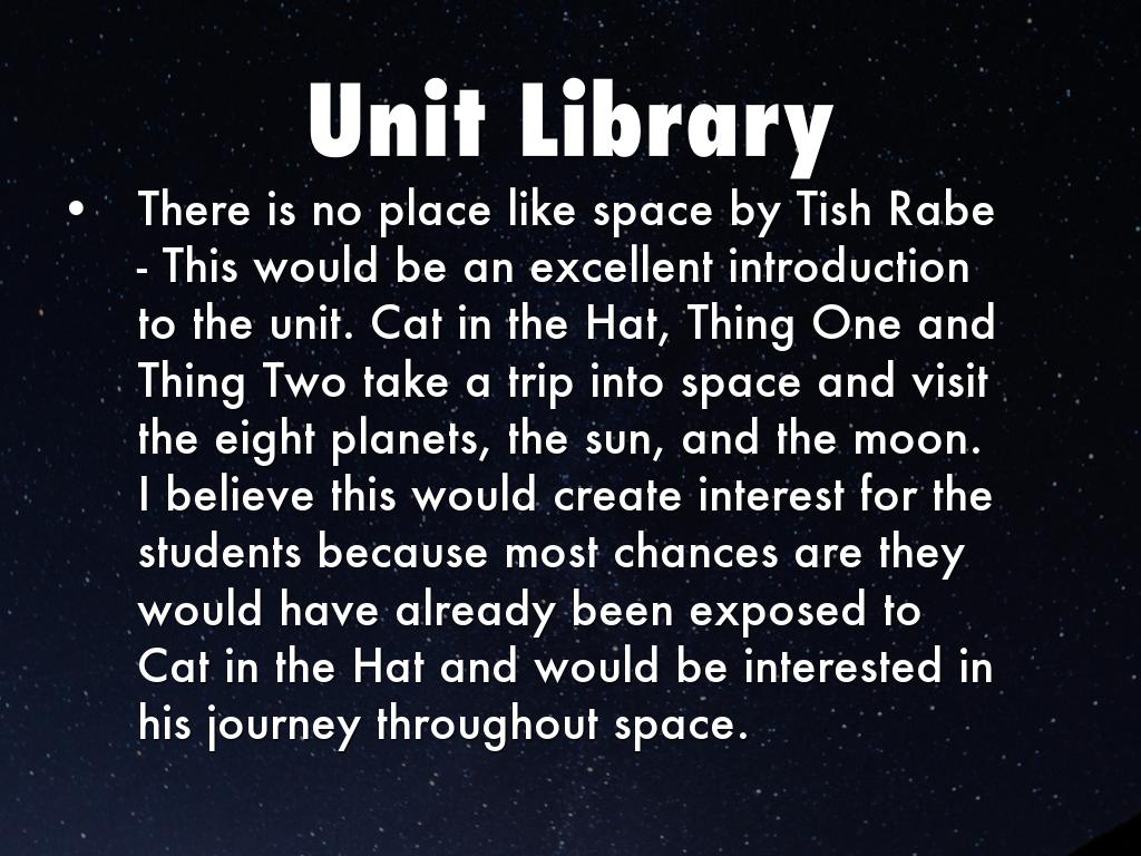- This would be an excellent introduction to the unit. Cat in the Hat, Thing One and Thing Two take a trip into space and visit the eight planets, the sun, and the moon. I believe this would create interest for the students because most chances are they would have already been exposed to Cat in the Hat and would be interested in his journey throughout space.