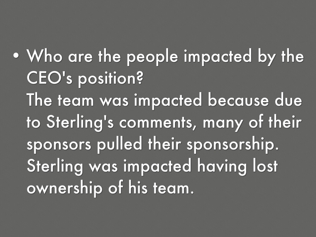 The team was impacted because due to Sterling's comments, many of their sponsors pulled their sponsorship.