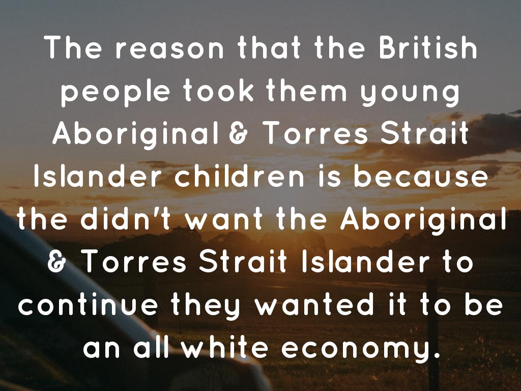 The reason that the British people took them young Aboriginal & Torres Strait Islander children is because the didn't want the Aboriginal & Torres Strait Islander to continue they wanted it to be an all white economy.