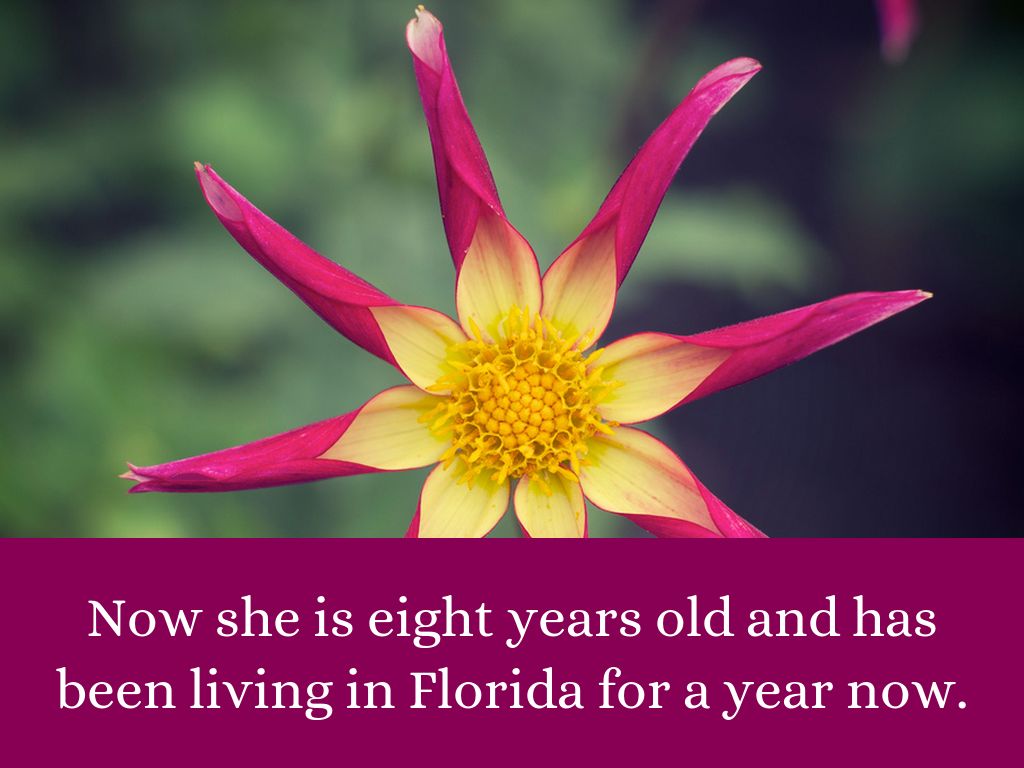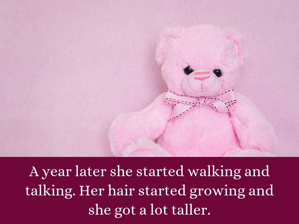 A year later she started walking and talking. Her hair started growing and she got a lot taller.