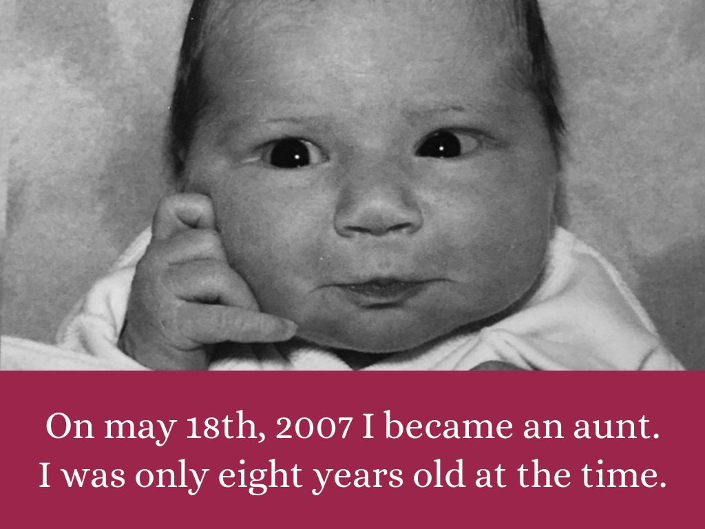 On may 18th, 2007 I became an aunt. I was only eight years old at the time.