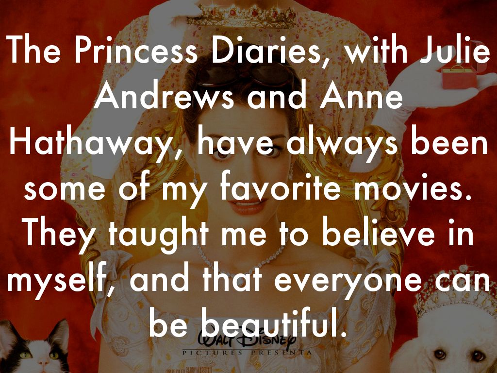 The Princess Diaries, with Julie Andrews and Anne Hathaway, have always been some of my favorite movies. They taught me to believe in myself, and that everyone can be beautiful.