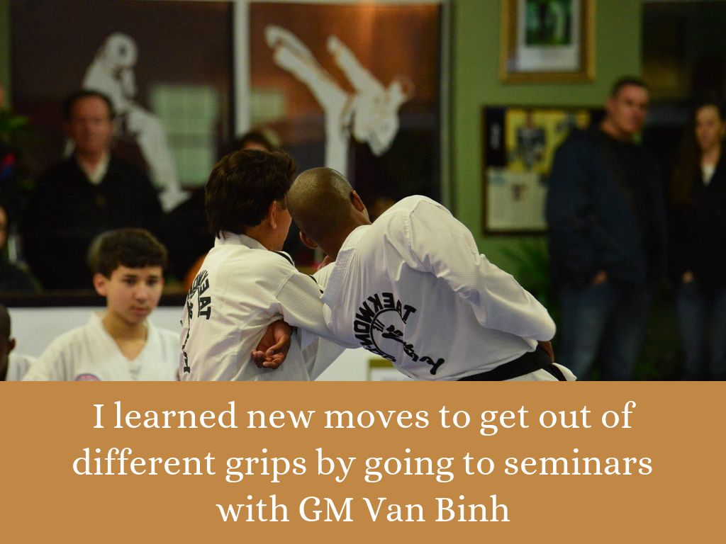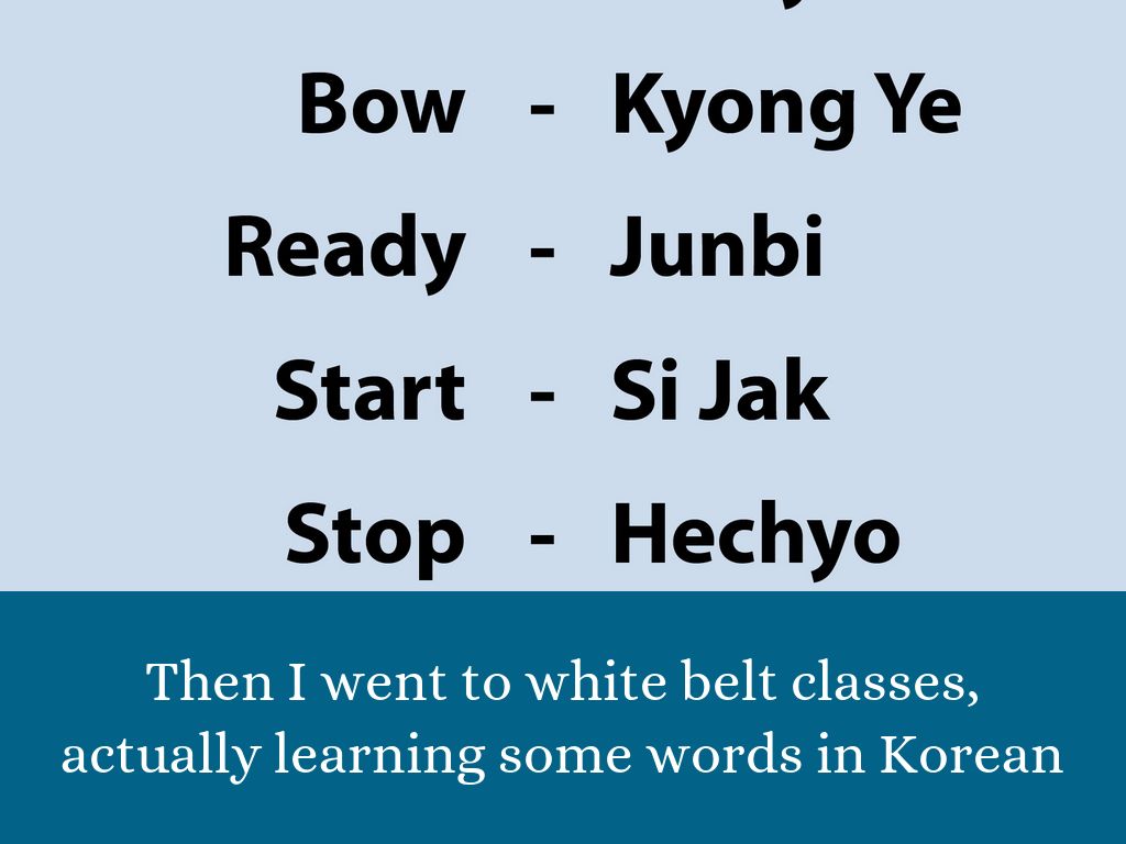 These are some of the color belts in Taekwondo. The order goes: white belt, yellow stripe, yellow belt, green stripe, green belt, blue stripe, blue belt, red stripe (my current belt), red belt, black stripe, 1st dan, 2nd dan, 3rd dan, and so forth.