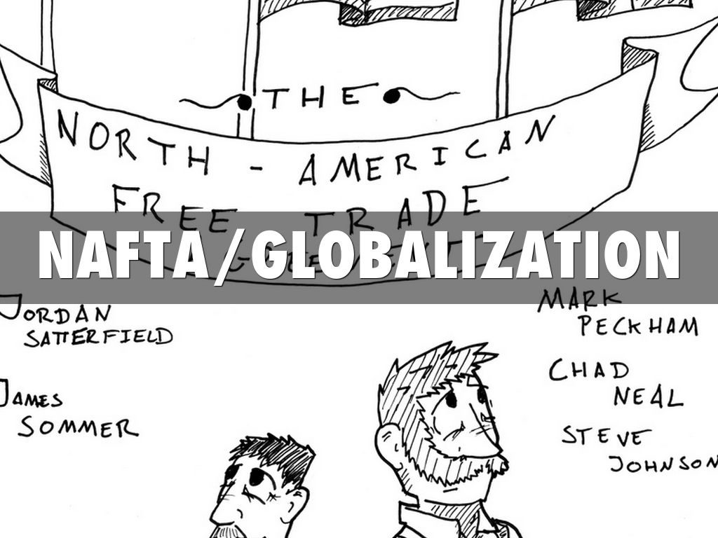 NAFTA stands for the North American Free Trade Agreement. It is signed by Canada, Mexico, and the United States. It states that all of these countries can trade freely with each other.