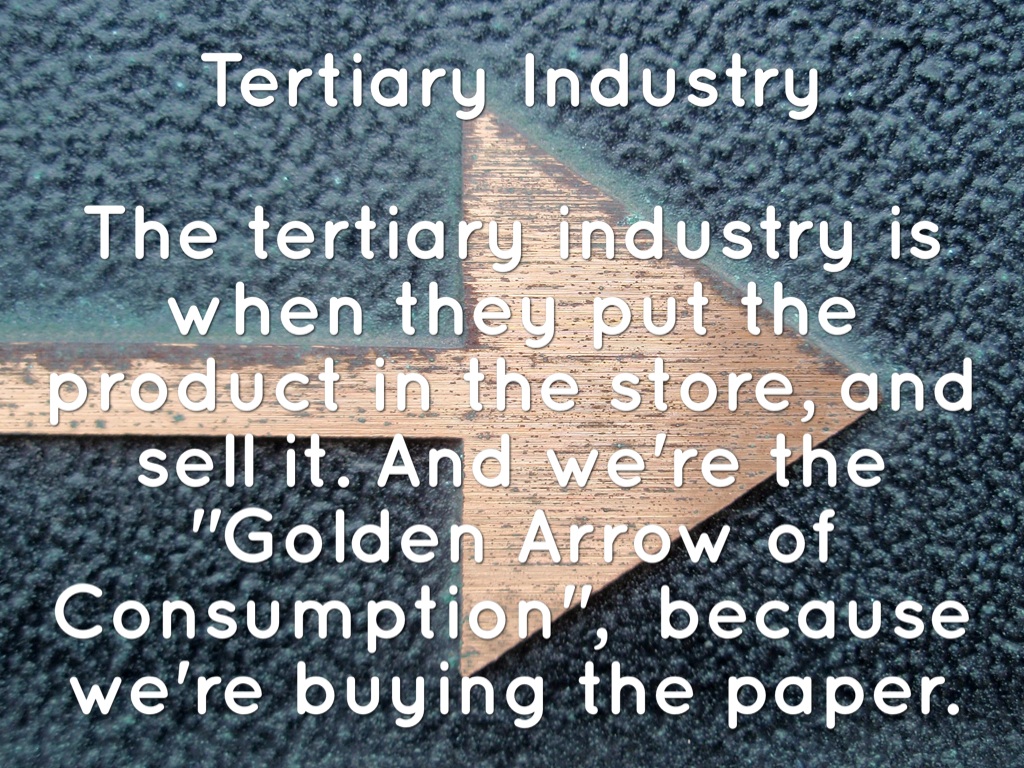 The tertiary industry is when they put the product in the store, and sell it. And we're the "Golden Arrow of Consumption", because we're buying the paper.