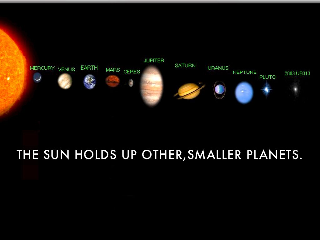 THE SUN HOLDS UP OTHER,SMALLER PLANETS.