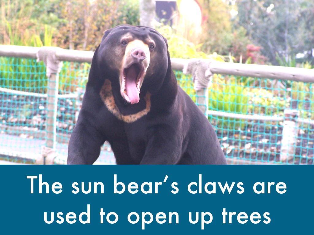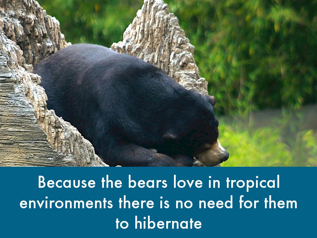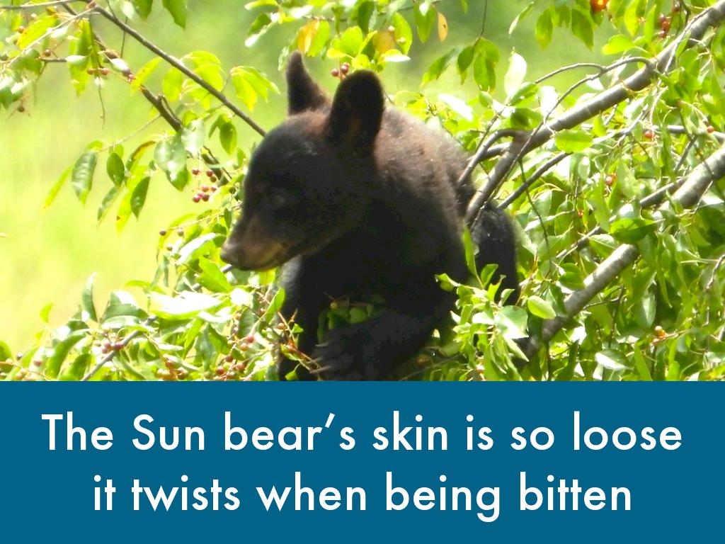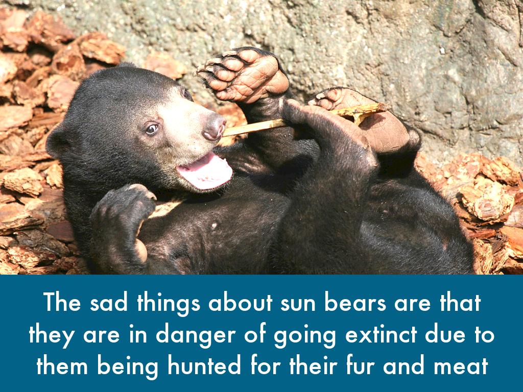 The sad things about sun bears are that they are in danger of going extinct due to them being hunted for their fur and meat