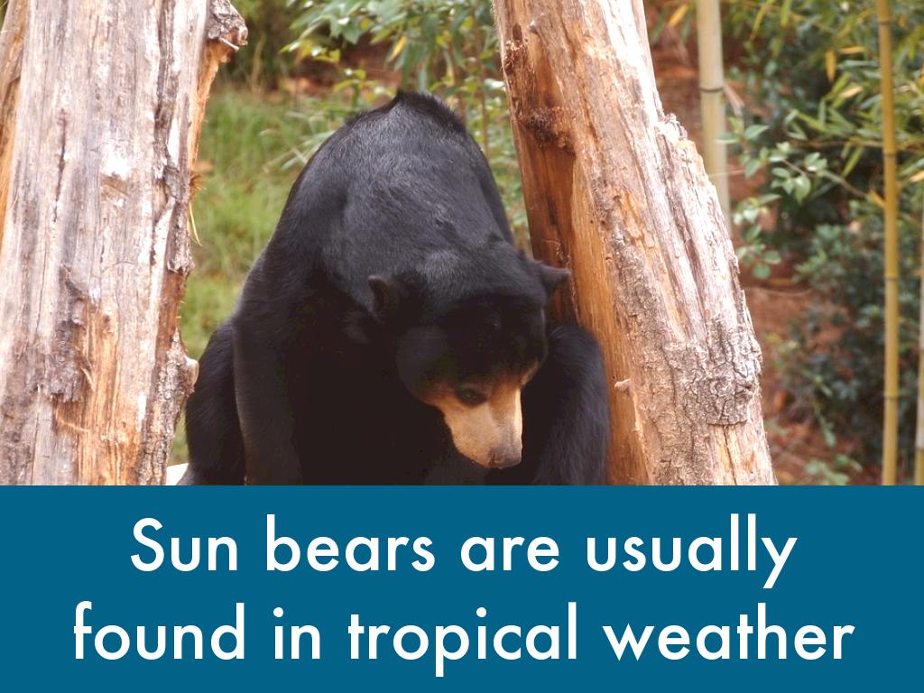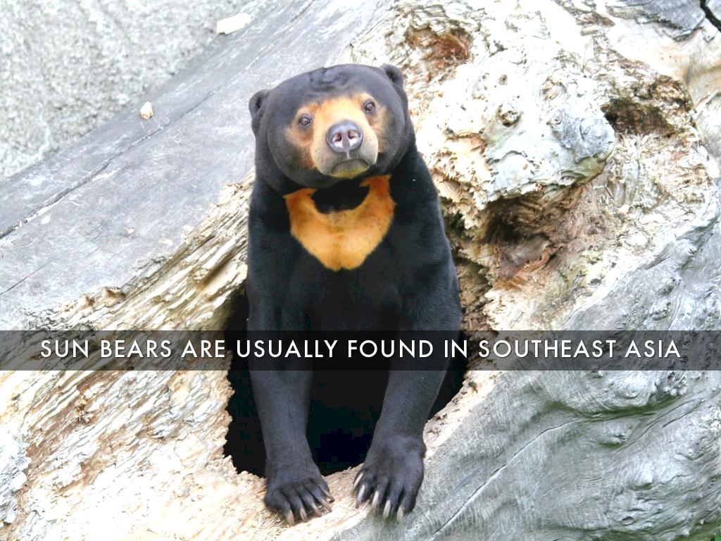 SUN BEARS ARE USUALLY FOUND IN SOUTHEAST ASIA