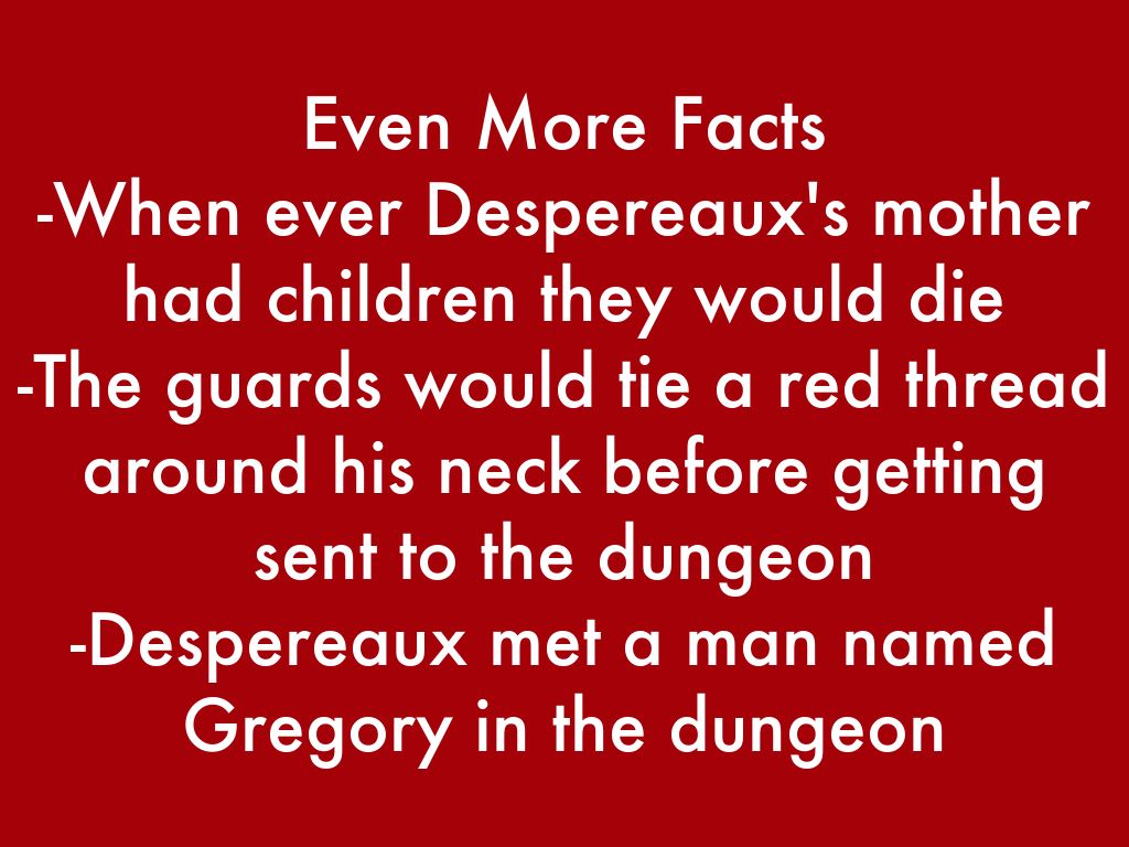 -When ever Despereaux's mother had children they would die